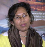 A Bangladeshi journalist, Sumi Khan works as a crime reporter and for her efforts has had to face death threats from various groups including Jamaat-e-Islami, one of the ruling political parties in Bangladesh. In 1999, while working on the Daily Jugnator in Dhaka, Khan broke a story concerning a high-ranking official raping his maid. Although the story was later picked up by other reporters, she was pushed out of her job. Undeterred, Khan continued reporting but in 2004, after reporting on politicians and their ties to attacks on minorities and on a local ring of child snatchers Khan was brutally attacked and it was months before she could return to work. Her fingers and hands were specifically targeted and broken. But return she did, in spite of a continuance of threats. She continues to work under these conditions, with a strong refusal to be intimidated by the violence that extremist groups have meted out too journalists in the past. At the magazine where she works, Weekly 2000, she is the only female news correspondent. In 2005, she traveled to London to receive the Index/Guardian Hugo Young award for her fearless journalism. She also won the International Women's Media Foundation Courage in Journalism award.